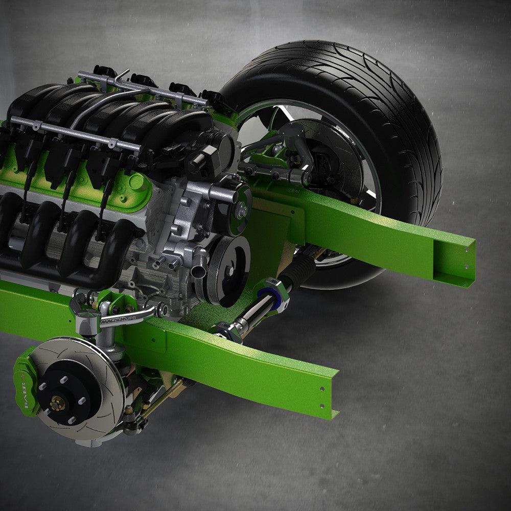 From the CNC machined billet caliper brackets, the 3.00mm wall cold drawn seamless a-arms, and the K1045 hi-tensile shock mount shafts, only the best available materials have been used.