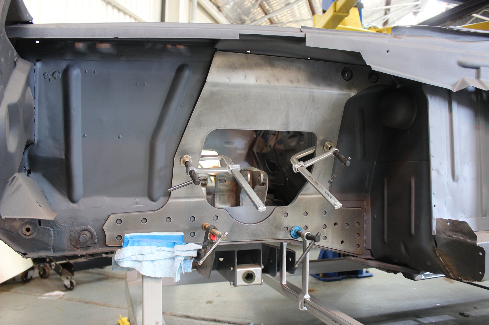The standard unit ships complete with BAER S4 brake calipers, QA-1 coilovers, steering rack, brake pads, integrated anti-roll bar, polyurethane bushes and all required fasteners. No hidden extras to be paid for, though there are many options for bigger brakes, custom colours etc. if required. (Control arms are powder coated satin black as standard, and the crossmember is left raw as this is a weld in unit). This unit is also supplied with necessary fish plating required to add strength back in where the strut towers were removed.